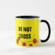 Yellow mug with two custom text fields "CRIME SCENE", "DO NOT CROSS". Blood stains.