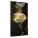 Painting of a crimped oriental fan with a floral design. The black background lets the colours on the fan pop off the print. Hang this on your wall and enjoy!
