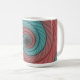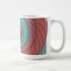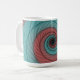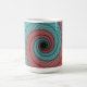 A mesmerizing spiral composed of layered, petal-like forms that gently twist inward toward a hypnotic center. The design transitions seamlessly between muted teal and warm coral tones, creating a striking yet balanced contrast. Each curved layer overlaps with soft shadows, giving the piece a sculpted, almost three-dimensional appearance.