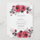 This design features striking crimson anemones with deep charcoal centres, creating a bold and sophisticated aesthetic. The painterly watercolor style is accented by dark, sketchy leaves and delicate berry branches for a touch of drama. A high-contrast palette of ruby red and black over a clean white base evokes a timeless and romantic atmosphere.