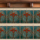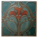 The "Crimson Bloom Art Nouveau Ceramic Tile" features a beautifully intricate design centred around a bold crimson flower. The petals of the flower are accentuated with delicate lines and curves, flowing seamlessly into the surrounding pattern. The background is a deep teal, which contrasts beautifully with the vibrant red of the flower, creating a visually striking effect. The design is highlighted with subtle golden accents, adding a touch of luxury and depth to the piece. The organic shapes and detailed patterns are characteristic of the Art Nouveau movement, making this tile a perfect blend of natural elegance and artistic craftsmanship. Ideal for enhancing the aesthetic of kitchens, bathrooms, or living spaces, this ceramic tile serves as both a functional element and a piece of art that brings the timeless beauty of Art Nouveau into your home.