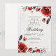 Deep crimson blossoms and dark botanical accents create a dramatic and romantic atmosphere. The watercolor-inspired design evokes a rich, painterly feel for an elegant occasion.