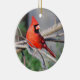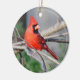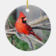 Crimson Cardinal decorates cheery Christmas ornament. Bright addition to home decor!