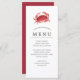 Personalised Crimson Crab themed food menus for your next Crab Bake Party or seafood event. It features a watercolor styled illustration of a crab. Underneath this are spots for your unique event menu information.