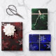 Crimson Emerald & Royal Blue Snowflake Pattern Wrapping Paper Sheet