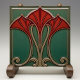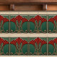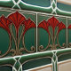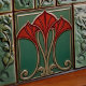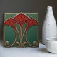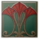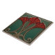 Unleash the bold drama of the Art Nouveau era with this striking ceramic tile. A trio of fiery crimson and scarlet leaves stands proudly against a backdrop of deep hunter green, exuding an intensity as vivid as it is elegant. The sinewy lines of antique gold and warm taupe create a visual feast, highlighting the fluidity and dynamism inherent to the Art Nouveau style. This piece, smooth to the touch with a printed design that mimics the depth of bas-relief, makes a passionate statement in any setting, be it as a sophisticated backsplash or a stand-alone decorative element.
