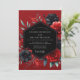 Experience a dramatic and moody romance with this stunning floral design. Lush crimson roses and deep charcoal anemones bloom against a rich red background. Accents of muted teal foliage add a touch of elegant contrast. This breathtaking arrangement evokes a sense of gothic and passionate beauty for your special day.