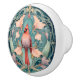 The "Crimson Majesty Ceramic Knob" showcases a magnificent red cardinal, rendered with lifelike precision, perched at the centre of an elaborate arrangement of leaves and flowers. The design reflects the fluid and organic aesthetic of the Art Nouveau movement, with its emphasis on natural forms and harmonious lines. The cardinal's vibrant red plumage stands out vividly against the soft teal background, creating a visually appealing contrast that draws the eye. Encased within a delicate, circular frame adorned with intricate patterns, this ceramic knob is a perfect blend of functionality and artistic elegance. Each detail is meticulously crafted, making this knob a standout piece that will add a touch of refined beauty to any room.