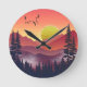 Crimson Mountains Landscape Round Clock