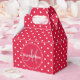 Crimson Red And White Polka Dots. Custom Name Favour Box