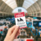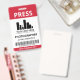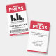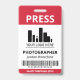 Vertical press ID badge in red with your logo and bar code. Add the employee's name and title. On the back, add additional information or text.