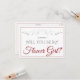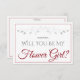 Use this "Flower Girl proposal card" to ask your special friend, sister, or other family member to be a Flower Girl at your wedding. It features red and grey text on a white background with a silver faux foil flourish. There is a space to enter a special note, as well as the wedding couple's names and wedding date. All fields are fully customisable.