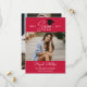 Double sided graduation save the date card with a typography design and a photo of the graduate in a bright shade of red. Add three more photos to the back in a clean collage. Graduation save the date template card personalised with photos.