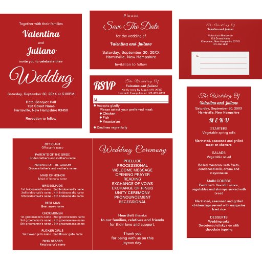 Provide the details of your wedding reception to your guests with this plain text on a solid crimson red background enclosure card, a colour to celebrate love and sophistication. A simple design for couples or hosts who prefer plain text without any things in the background. Texts are centre aligned and combination of calligraphy and script fonts to enhance the style and sans serif font to enhance readability. The white text contrasting on the solid crimson red background also enhances readability and clarity. Customise it by typing the names of the bride and groom and reception details. Please check the appearance of the front and back sides after typing texts. If the appearance is pleasing to you, you can place place your order now. If you need to resize and reposition the texts to fit on this enclosure card or on the size that you will choose, please adjust in the design tool. You can also change the font style, font colour and background colour in the design tool. Congratulations on your engagement! Wishing you a lifetime filled with love and happiness.