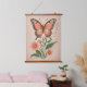 Immerse yourself in the delicate beauty of this captivating design. A magnificent red butterfly takes center stage, its vibrant wings spread wide as if in a graceful dance. Below, a cluster of soft pink flowers adds a touch of sweetness to the scene, creating a harmonious contrast against a serene, uncluttered backdrop.