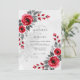 This design features deep crimson roses paired with charcoal grey foliage for a striking contrast. The romantic floral arrangement creates an elegant atmosphere suitable for a formal winter theme. Subtle grey floral shadows in the background add depth and a touch of sophistication to the overall aesthetic.