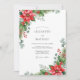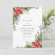 This design showcases a vibrant seasonal arrangement of red poinsettias and green holly leaves. Lush eucalyptus sprigs and pine needles provide a soft, textural contrast against the white background. Delicate red berries are scattered throughout the botanical motifs, evoking a classic holiday atmosphere. The palette of crimson and emerald creates a sophisticated mood.