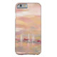 A soft abstract design in soft peach and pink shades depicting sailboats on the coast. Artist : Silvia Vassileva