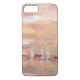 A soft abstract design in soft peach and pink shades depicting sailboats on the coast. Artist : Silvia Vassileva