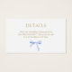 These lovely wedding detail enclosure cards features your website details and QR code to help direct guests. The template includes chic custom text in faux gold colour against a stylish crips white background. The trendy blue ribbon illustration excudes a joyful tone and a youthful elegance. Couple initials side by side at the back.