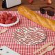 A round disposable dish featuring a realistic bacon pattern, perfect for breakfast lovers and themed gatherings. Enjoy the sizzling look without the grease! generativecontent.