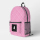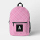 Crisscross Gingham Check Pink and White Monogram Printed Backpack