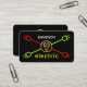 An all black cover features a power plug design, one red, one green intercepting each other. At its center point is a gold repair tools bulb logo you can use. At the top is your prestigious name with the business name "electric" at the base of the card. You can change the caption to suit your own service needs.