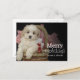 Cristmas Malti-poo puppy sitting in basket Holiday Postcard