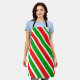 Get festive during the holiday season with this Christmas color stripped apron of red, white, and green.