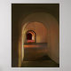This poster features a photo of an interior at the San Cristobal fortress in Old San Juan, Puerto Rico. Successive archways, lit in warm tones by the late afternoon sun, lead to an old wooden door.