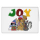 The critters are celebrating the holidays, carrying gifts and wearing their winter garb. Colourful text reads "JOY" on these cute Critter Joy T-shirts, mugs, cards, stickers, mousepads, keychains, tote bags, and much more.