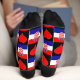 Fun patriotic socks for proud Croatians and anybody who loves Croatia. Featuring a unique chequered pattern with red hearts on black squares, and the national flag of Croatia filling in the other squares. These are a great way to show your love for Croatia and support for Croatian people, national teams and culture.