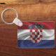 Keychain with the flag of Croatia in wavy fabric style design. This design features the Croatian flag colours and design with a beautiful waving material textured effect. This flag design is a great way to show you are proud to be from Croatia.