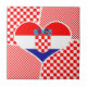 Beautiful ceramic tile features the Croatian flag in a heart-shaped collage surrounded by red and white chequerboard pattern.