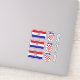 This custom cut vinyl sticker features the 3 Croatian flags, 3 emblems and 3 text templates (for example: your name, Croatia, Hrvatska) in blue. black and red handwriting font.