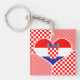 This keychain features the flag of Croatia in a heart with a red and white chequerboard pattern around it.