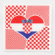 This napkin features a collage image of the Croatian flag in a heart-shaped centre, surrounded by famous red and white chequered pattern in two different sizes.