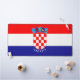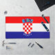 This desk mat features the flag of Croatia with a coat of arms and customisable curved text "Croatia" in a white font at the bottom. Personalise it with your name or text.