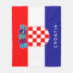 This fleece blanket features the flag of Croatia with the coat of arms and customisable text that reads "Croatia" in white font placed on a blue stripe. Personalise it with your name or text, or you can delete it.