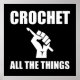 Crochet All The Things. This funny crocheting lover accessory is a great idea for the crazy crocheter in your life. Perfect for anyone who loves to crochet & craft, and loves yarn! If crocheting is your hobby, you’re a yarn lover and you love crafting with a crochet hook and balls of yarn, then this crocheter design is for you! Features a graphic of a fist holding a crochet hook and typographic text.