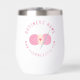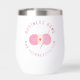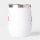 Crochet Crocheting Website Custom Business Name Wine Tumblers features a crochet hook and pink yarn with your custom text such as business name and company website in modern typography script on a white background. Personalised by editing the text in the text boxes provided. Perfect for small business promotion, advertising and gifts. Designed by ©2024 Evco Studio www.zazzle.com/store/evcostudio