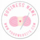 Crochet Crocheting Website Custom Business Name Stickers Labels features a crochet hook and pink yarn with your custom text such as business name and company website in modern typography script on a white background. Personalised by editing the text in the text boxes provided. Perfect for small business, crochet products, envelope seals, gifts and favours. Designed by ©2024 Evco Studio www.zazzle.com/store/evcostudio