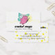 Cute animal or monster fairy with magic crochet hook on this business card for crocheted yarn crafts, personalised with your choice of colour scheme and fonts, perfect for gifting and craft show sales.