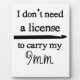 Show your love for yarn and all things crochet by sporting this funny "I don't need a license to carry my 9mm"...crochet hook that is! Also makes a great gift for the yarn loving hook toting person in your life!