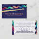 Crochet hook and colourful stitches or stitching featured on this crafting business card for yarn or crocheted crafts, personalised with your choice of colour scheme and fonts.