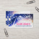 Watercolor style space or universe background with balls of yarn, crochet hooks and glowing stars on this craft show business card for a crochet or yarn crafts business.
