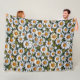 Crochet White Daisies Spring Wildflowers Fleece Blanket