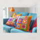 Crocheted Granny Square Pillows Lying on a Sofa Postcard
