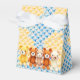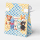 Cute baby shower favor bags with crocheted stuffed animal teddy bears in blue, brown and yellow. Thank your guests with a favor bag full of goodies!