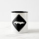 Black & white crocodile sign with drop shadow on two-tone mug.